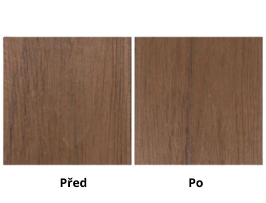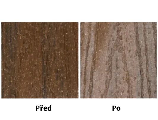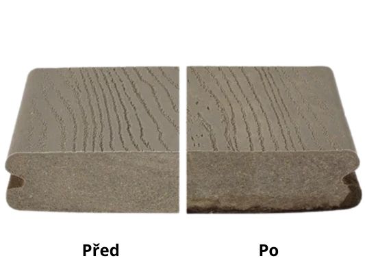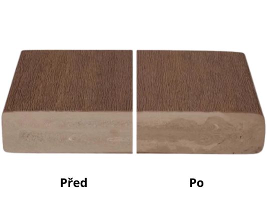 Konkurenční kompozitní prkna podléhají nevratnému vyblednutí a povrchovému křídovatění. Viditelné částice dřevité moučky v ochranné vrstvě mohou navíc způsobovat absorpci vlhkosti.