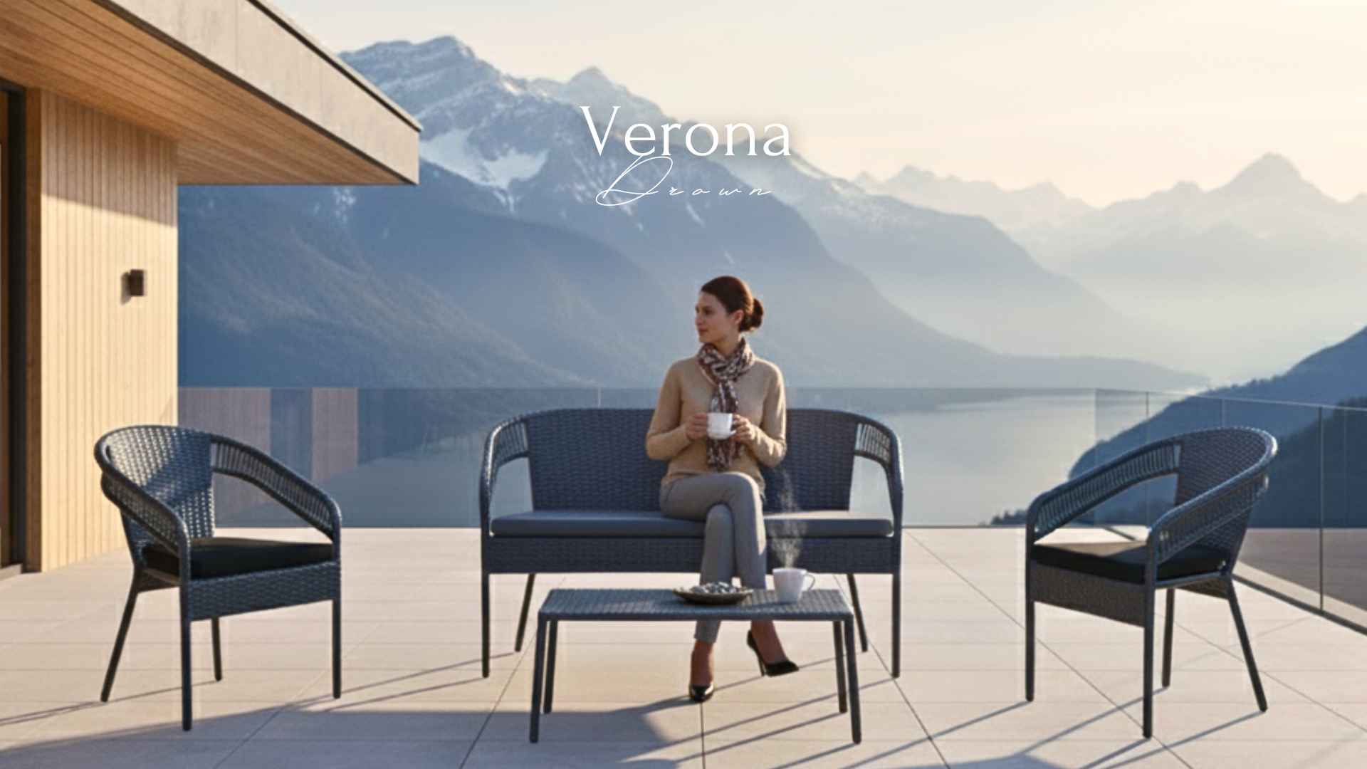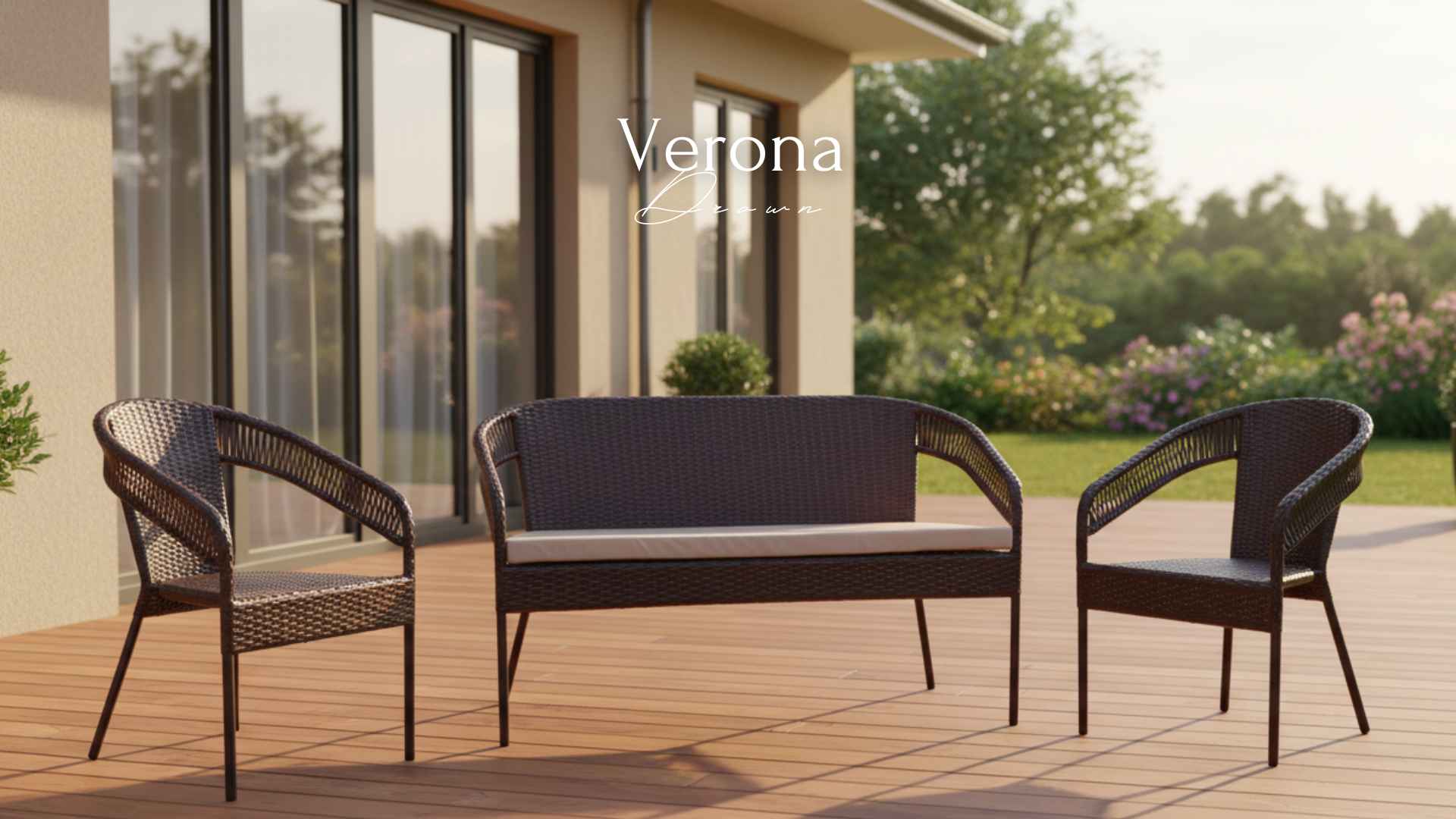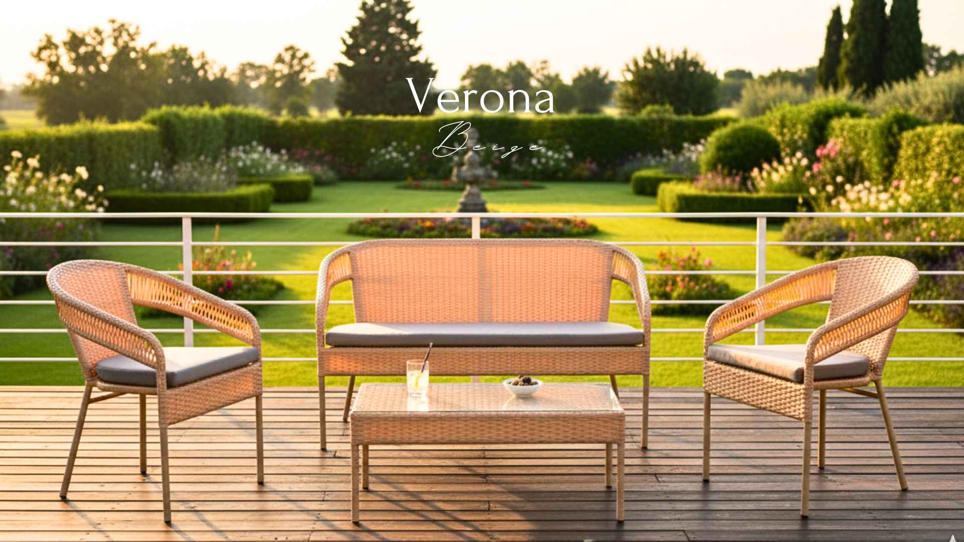 Kolekce Verona se vyznačuje uměleckým ručním pletením z umělého ratanu a jemnými liniemi, které vytvářejí pocit lehkosti.