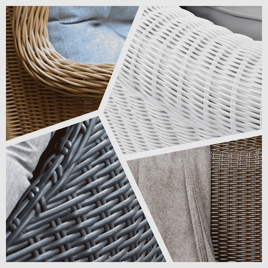 Vysoce kvalitní umělý ratan zajišťuje dlouhou životnost i při náročném venkovním použití. Na výběr máte z několika barev a typů výpletu, které přizpůsobíme vašim potřebám.
