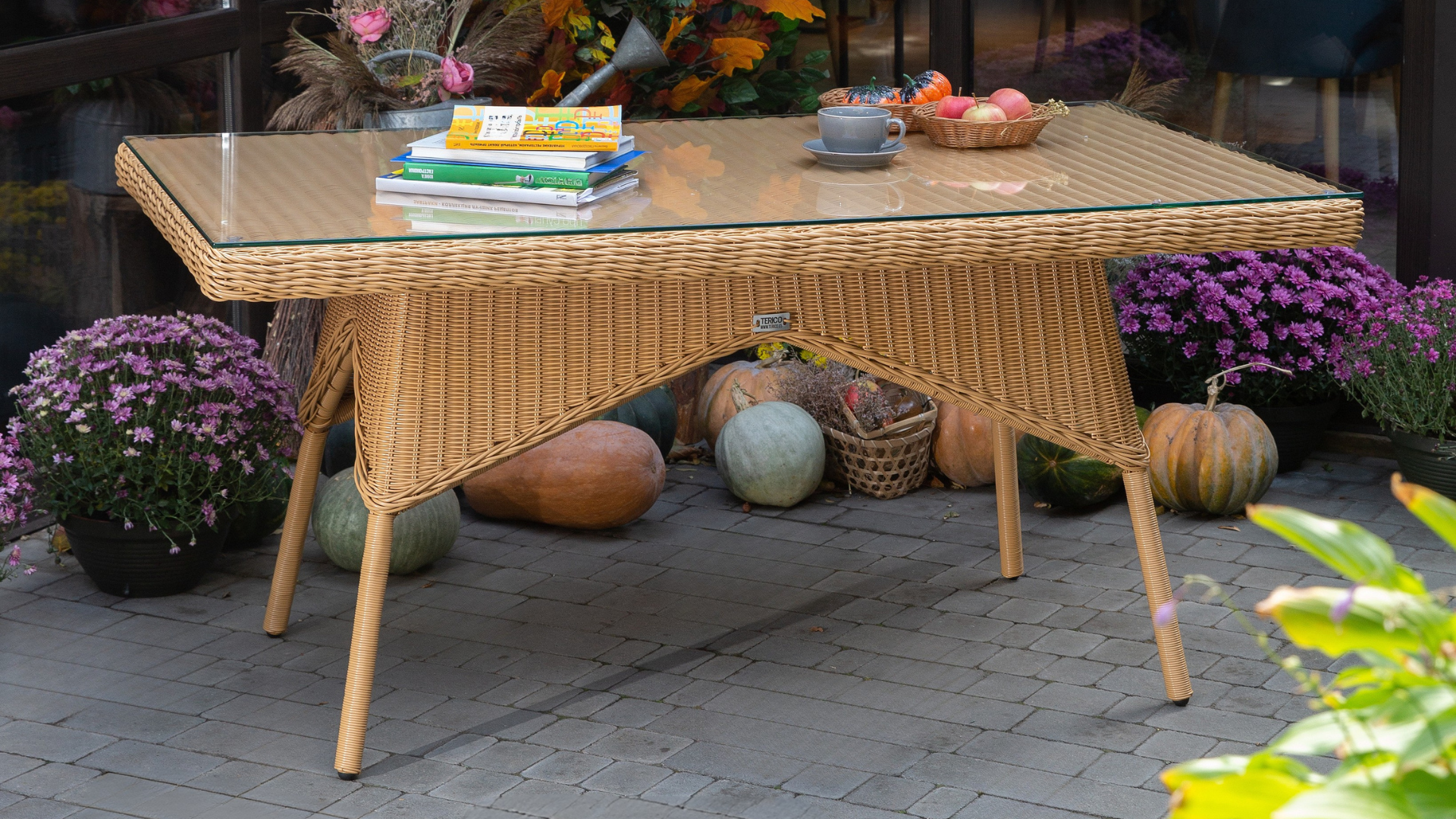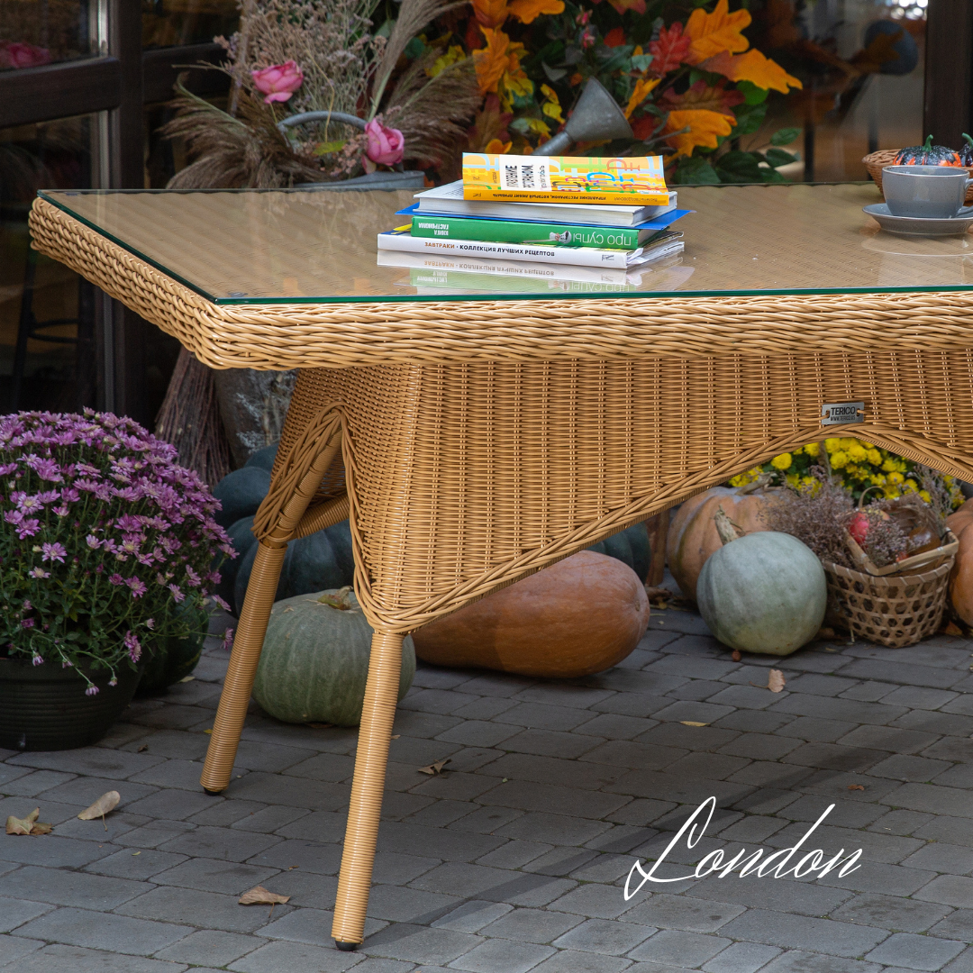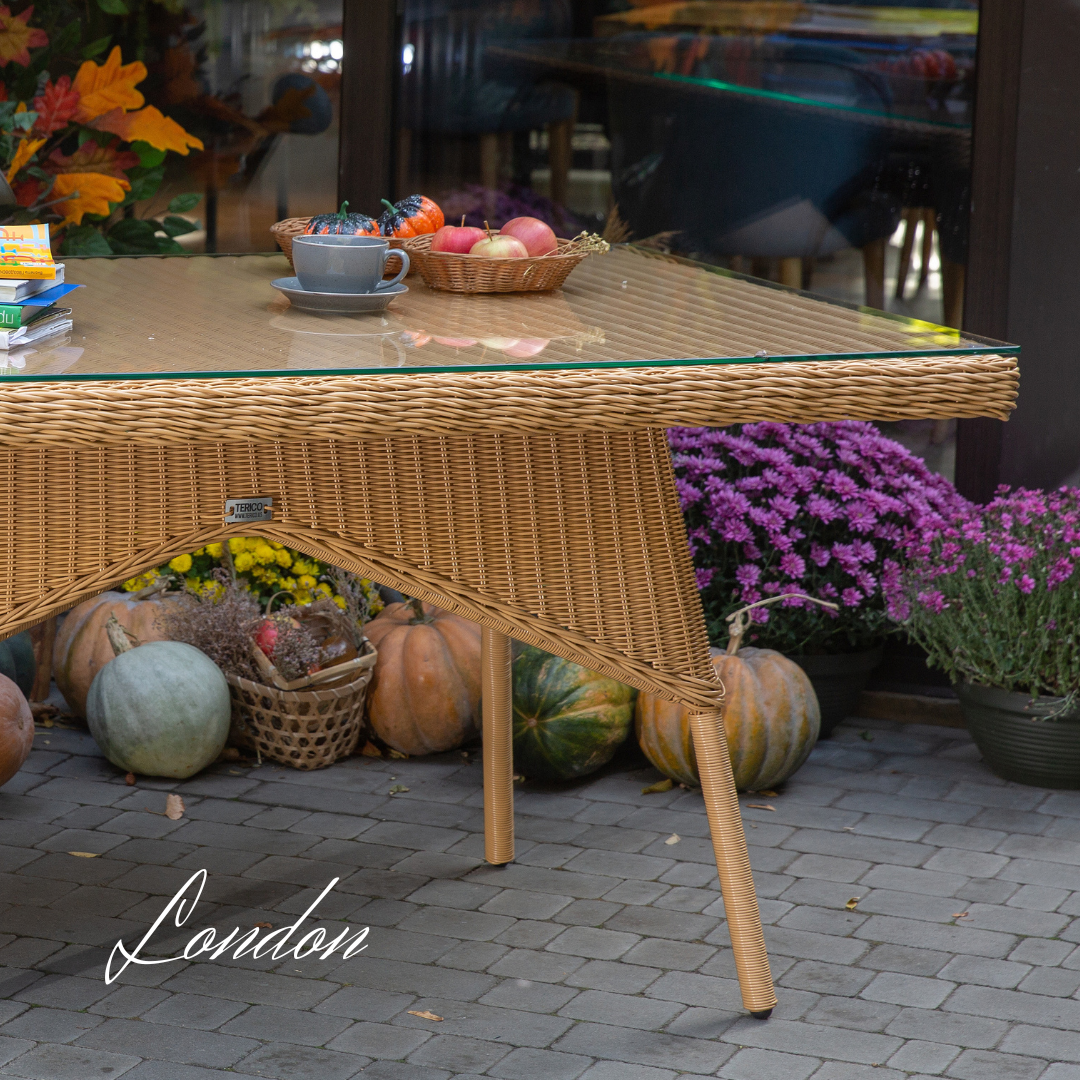 Ratanový stůl LONDON Terico. Mléčně béžová barva ratanu.