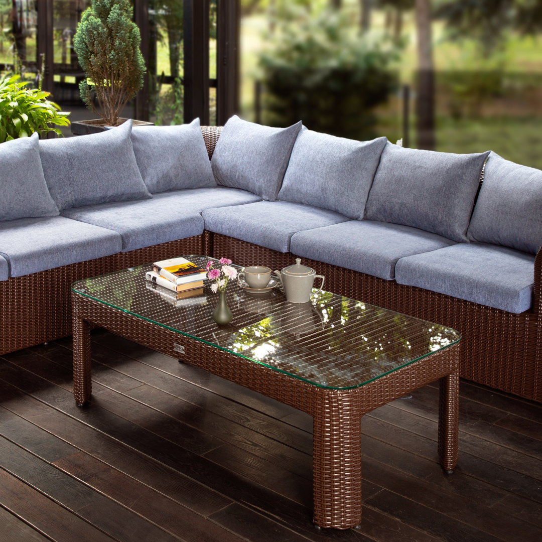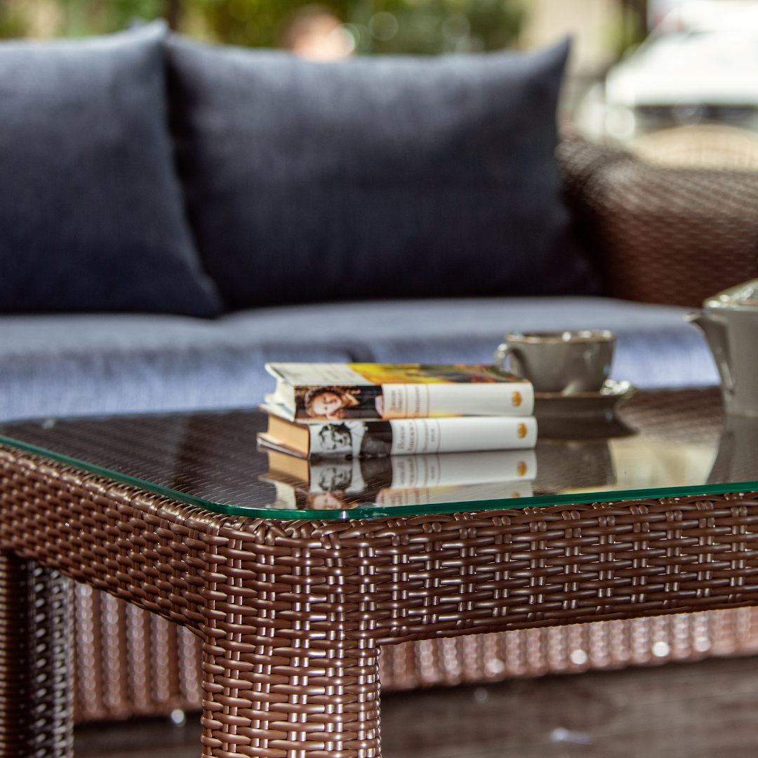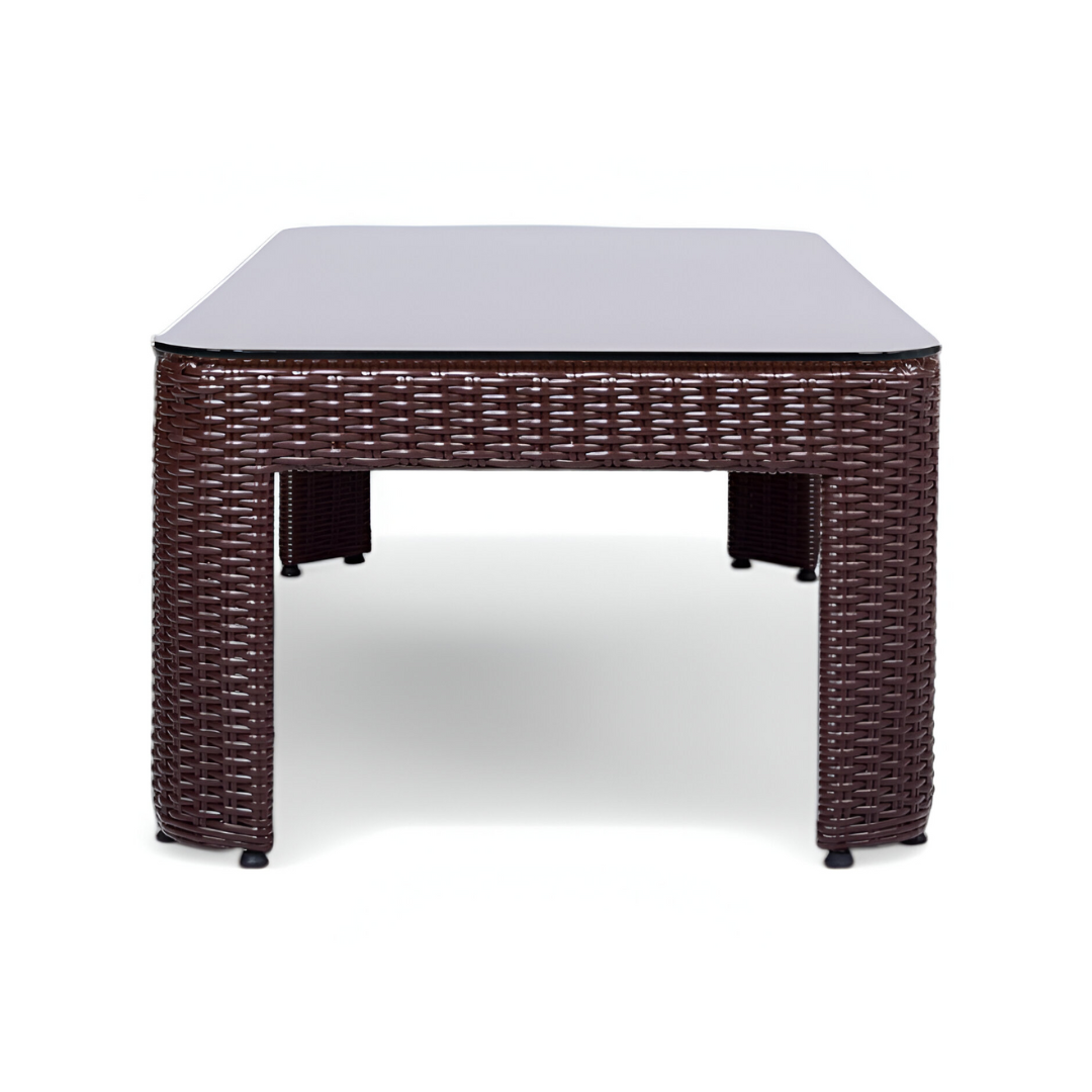 Luxusní Střední pletený konferenční stolek z umělého ratanu s deskou z tvrzeného skla AMPIR.