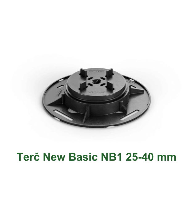 Terč New Basic NB1 25–40 mm je výškově stavitelná podložka pod dlažbu, která zajišťuje stabilní, přesné a bezpečné vyrovnání venkovní dlažby. Díky nosnosti až 1000 kg, široké základně o ploše 330 cm² a spárovacím křidélkům 4 mm je vhodný pro pevné a rovnoměrné uložení dlažby na terčích. Podložka je vyrobena z odolného polypropylenu, který odolává UV záření, vysokým teplotám i kyselinám a je testován v rozmezí od -40 °C do +120 °C.