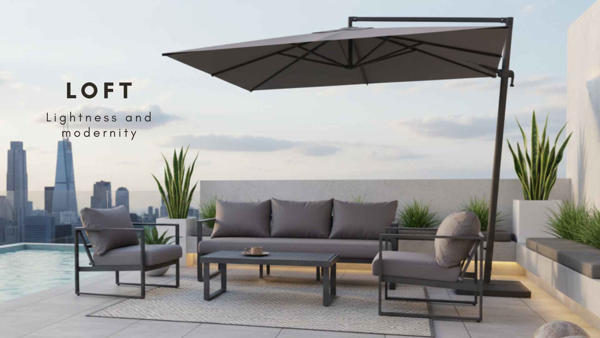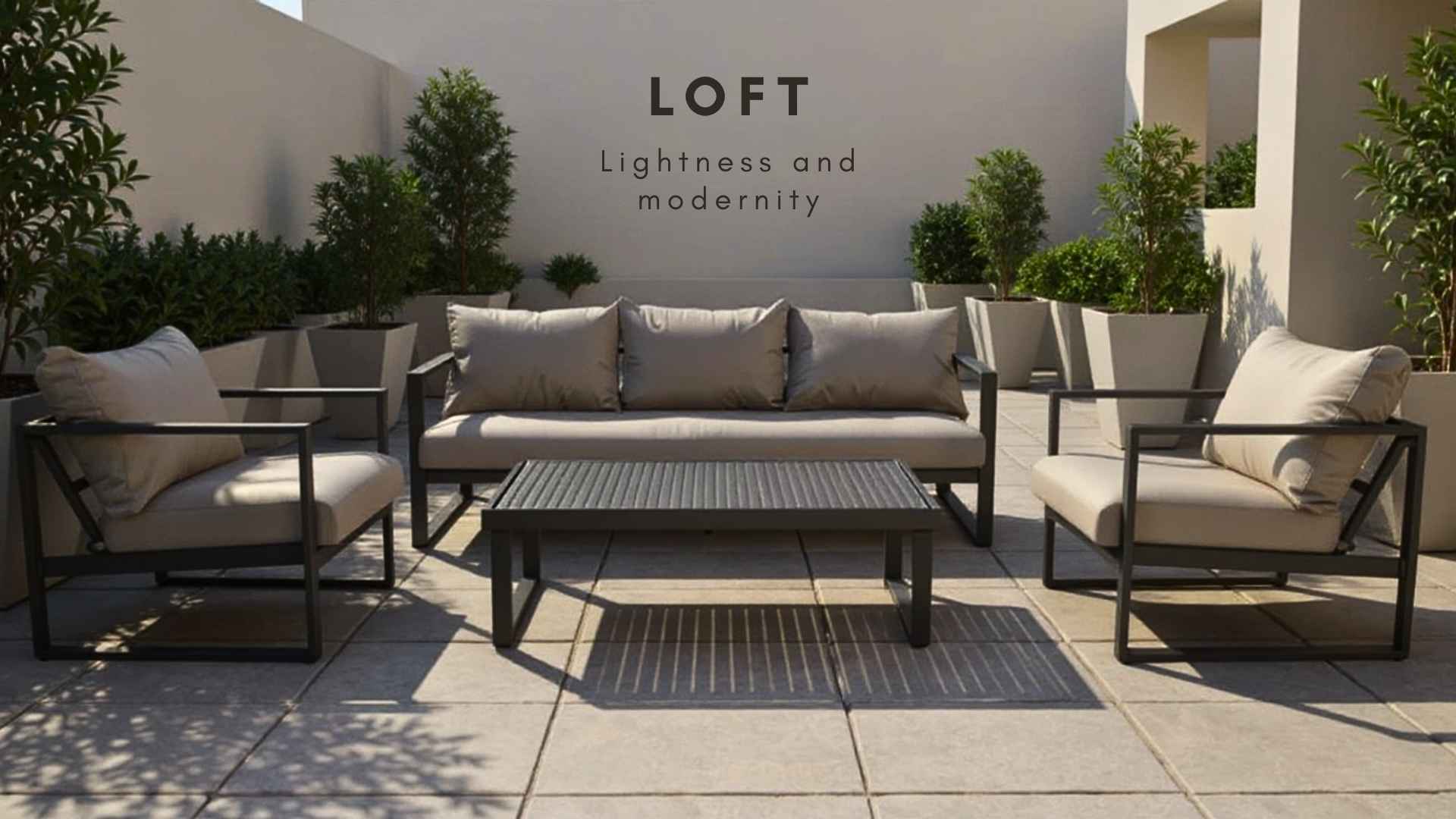 Navržena a promyšlena tak, aby vytvořila maximálně pohodlný prostor na terase nebo pod širým nebem. Kolekce je koncipována tak, aby umožnila dokonale zařídit terasu nebo patio v minimalistickém stylu.