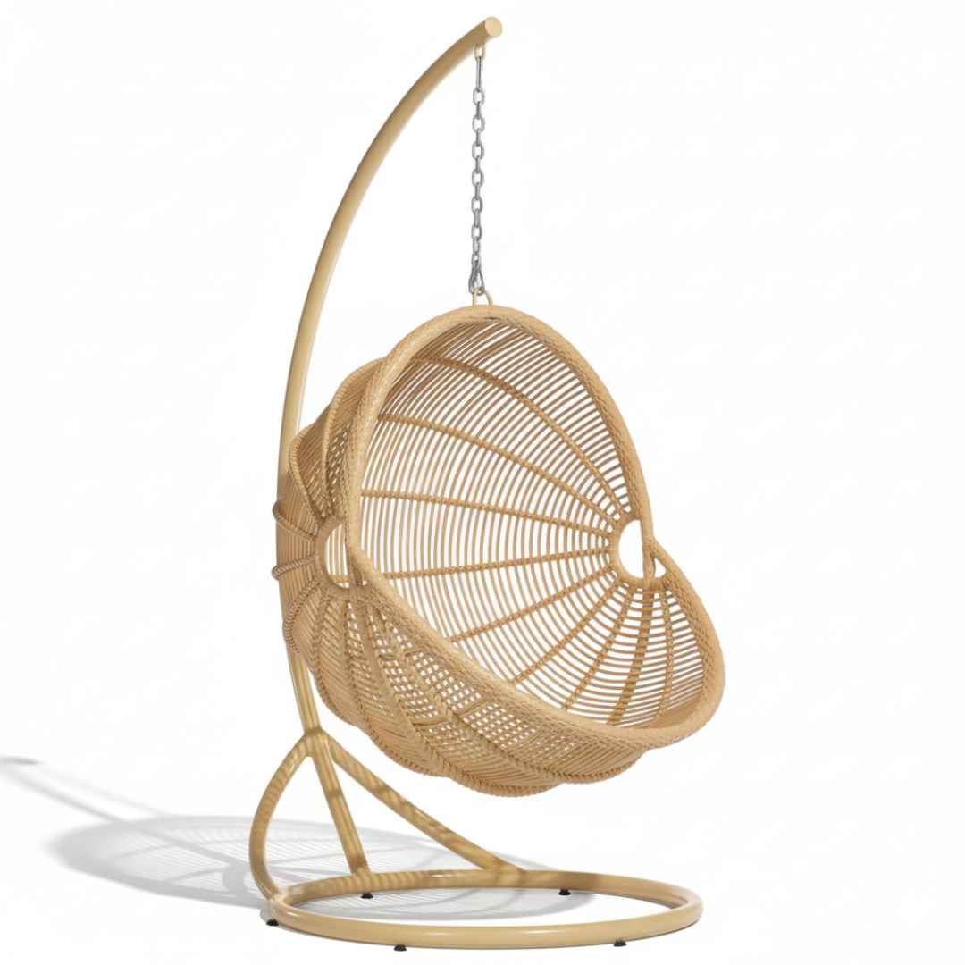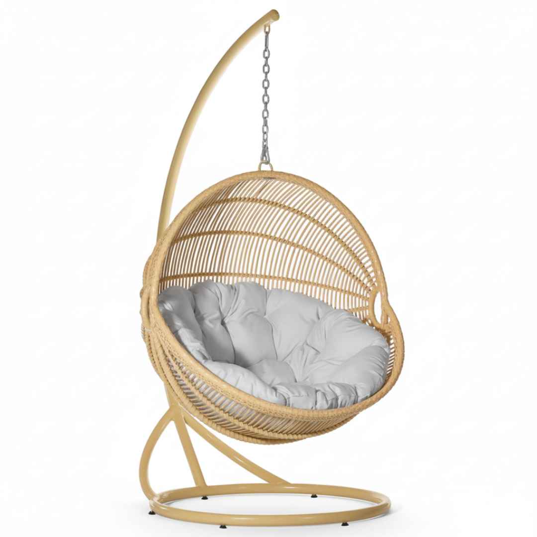 Závěsné křeslo MAROO (prémiové) se stojanem – houpací křeslo ve tvaru vajíčka. Béžová
