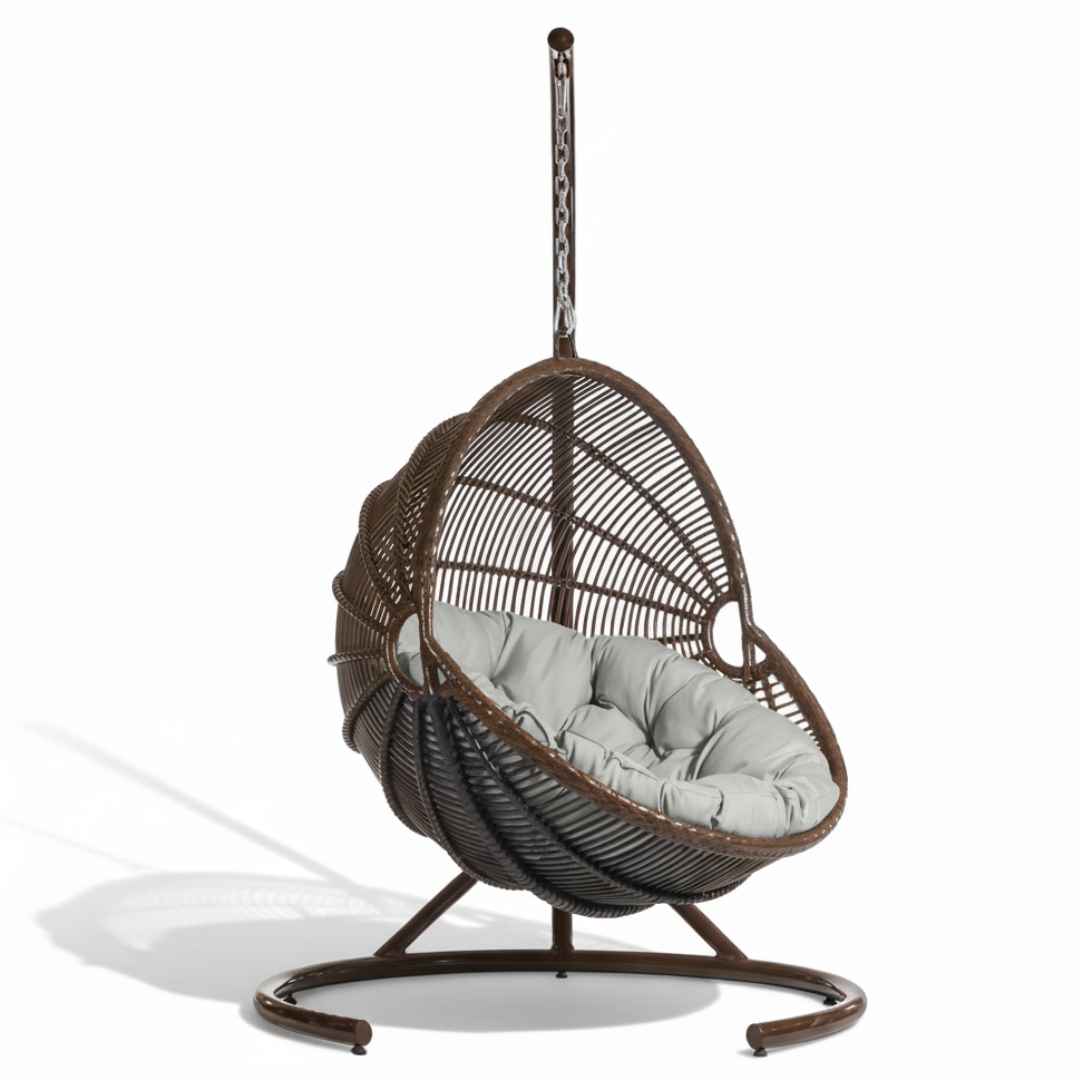 Závěsné křeslo MAROO (prémiové) se stojanem – houpací křeslo ve tvaru vajíčka. Hnědá